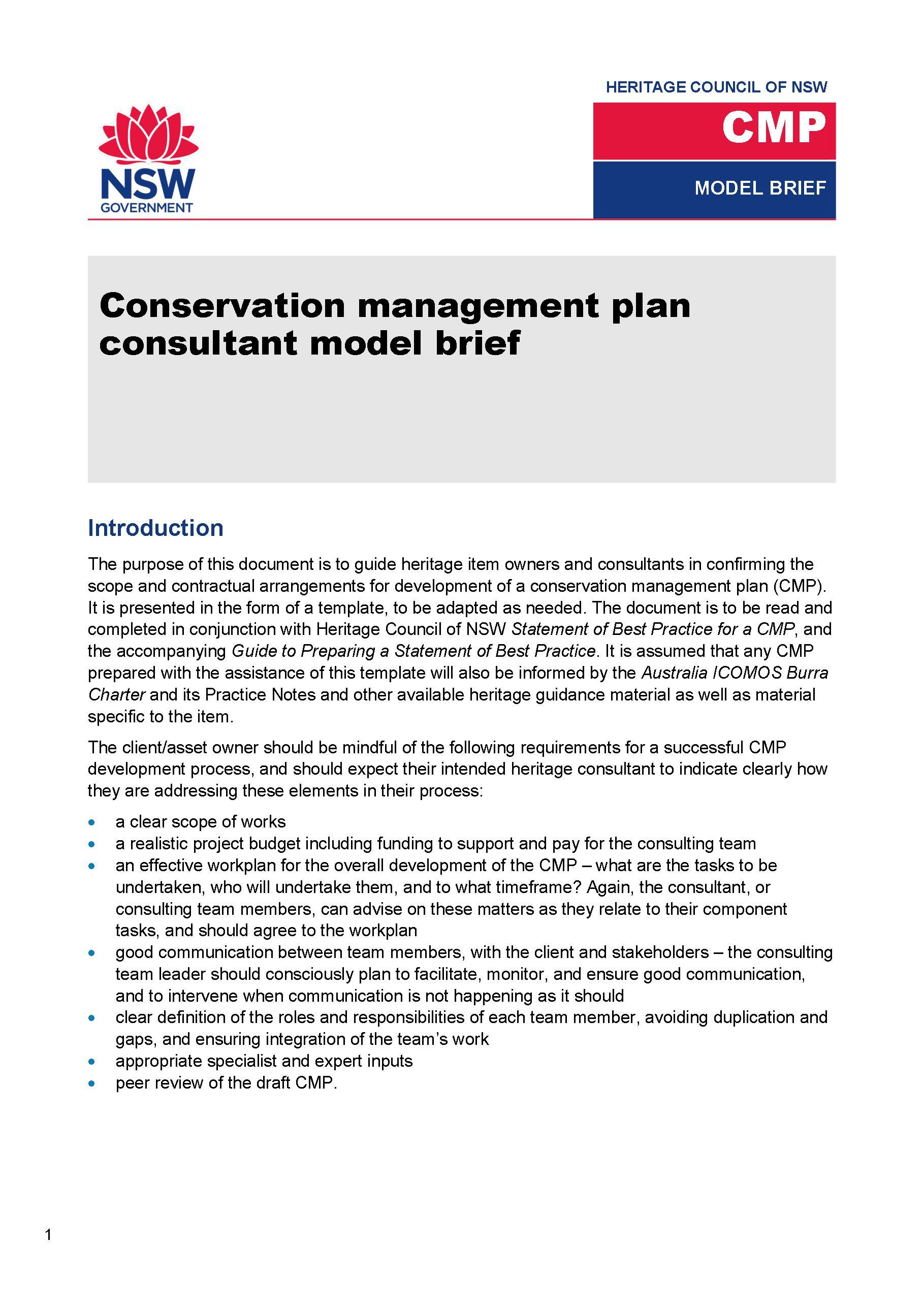 Heritage conservation management plan consultant model brief