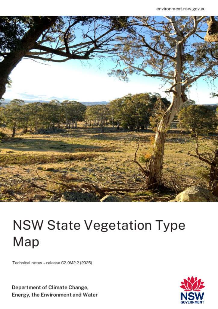 The State Vegetation Type Map is the most complete and consistent representation of the distribution of plant community types (PCTs) in New South Wales. It was first published in June 2022 and is revised and updated annually to include new sources of information, including survey sites, expert opinions, revisions, corrections and new mapping.